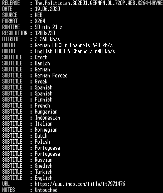 | FiLENAME: | The.Politician.S02E01.GERMAN.DL.720P.WEB.X264-WAYNE.mkv |