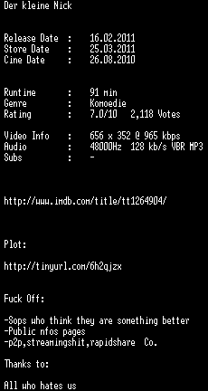 | FiLENAME: | Der.kleine.Nick.German.DVDRip.XviD-DiSTRiCT.avi |
