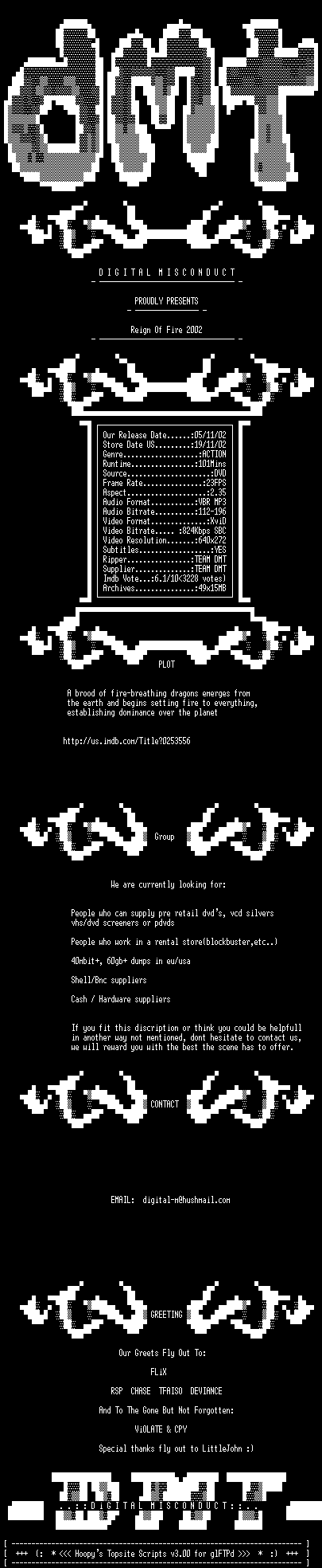 | FiLENAME: | Reign.of.Fire.DVDRip.XviD-DMT.avi |