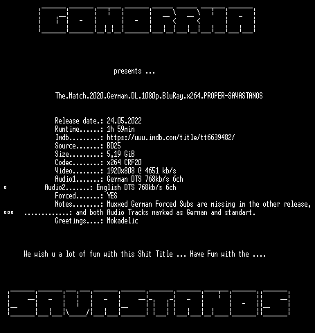 | FiLENAME: | The.Match.2020.German.DL.1080p.BluRay.x264.PROPER-SAVASTANOS.mkv |
