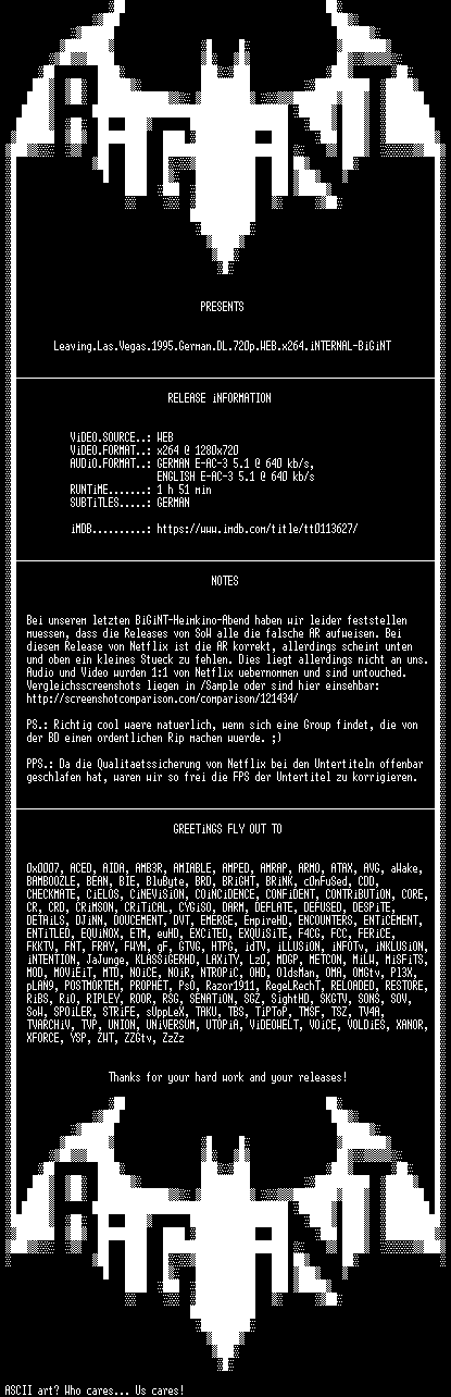 | FiLENAME: | Leaving.Las.Vegas.1995.German.DL.720p.WEB.x264.READNFO.iNTERNAL-BiGiNT.mkv |