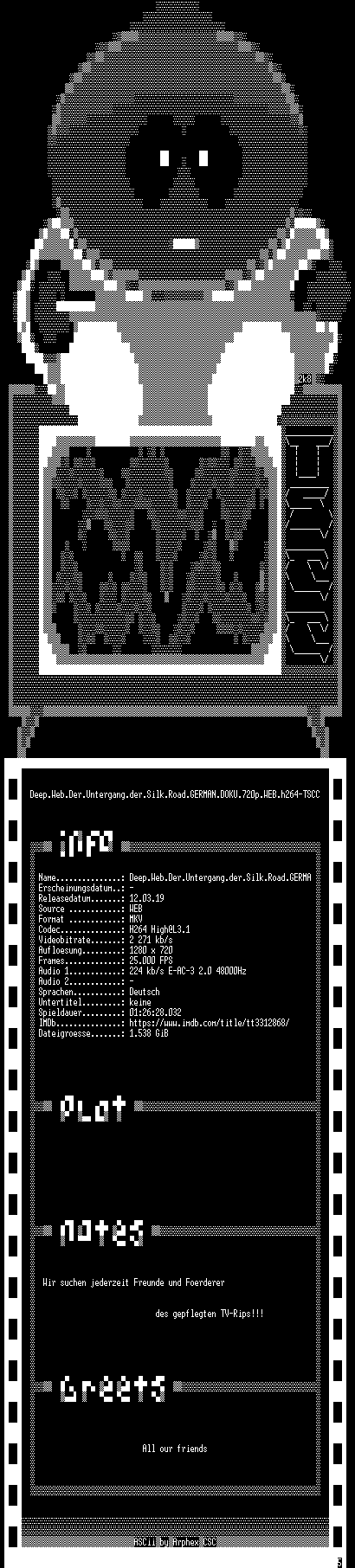 | FiLENAME: | Deep.Web.Der.Untergang.der.Silk.Road.GERMAN.DOKU.720p.WEB.h264-TSCC.mkv |