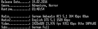 | FiLENAME: | The.Green.Inferno.Directors.Cut.2013.GERMAN.DUBBED.DL.1080p.BluRay.x264-MULTiPLEX.mkv |