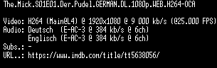 | FiLENAME: | The.Mick.S01E01.Der.Pudel.GERMAN.DL.1080p.WEB.H264-OCA.mkv |