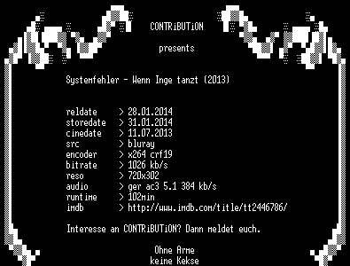 | FiLENAME: | Systemfehler.Wenn.Inge.tanzt.2013.German.BDRip.x264-CONTRiBUTiON.mkv |