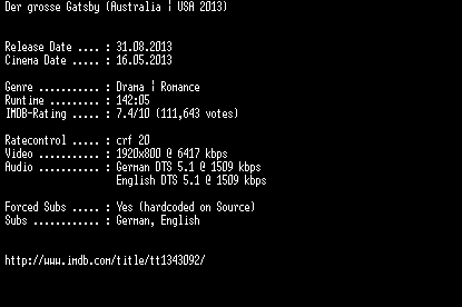 | FiLENAME: | Der.grosse.Gatsby.German.DL.1080p.BluRay.x264-EXQUiSiTE.mkv |