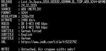 | FiLENAME: | Lost.In.Space.2018.S02E02.GERMAN.DL.720P.WEB.X264-WAYNE.mkv |