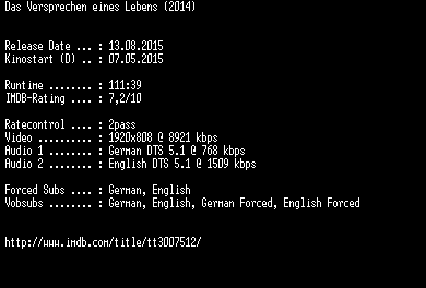 | FiLENAME: | Das.Versprechen.eines.Lebens.2014.German.DTS.DL.1080p.BluRay.x264-EXQUiSiTE.mkv |