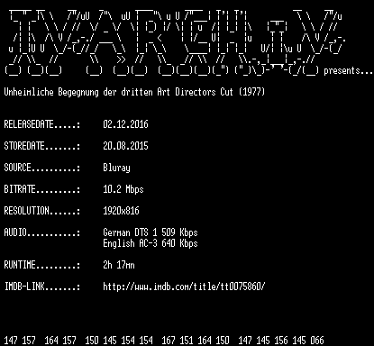 | FiLENAME: | Unheimliche.Begegnung.der.dritten.Art.Directors.Cut.1977.German.DL.1080p.BluRay.x264.iNTERNAL-TVARCHiV.mkv |