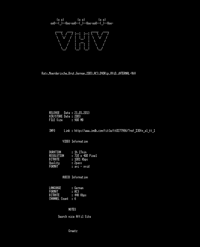 | FiLENAME: | Rats.Moerderische.Brut.German.2003.AC3.DVDRip.XViD.iNTERNAL-VhV.avi |