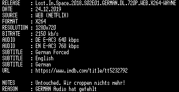 | FiLENAME: | Lost.In.Space.2018.S02E01.GERMAN.DL.720P.WEB.X264-WAYNE.mkv |