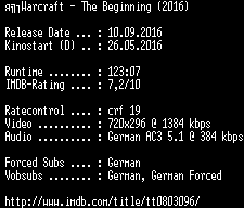 | FiLENAME: | Warcraft.The.Beginning.German.2016.AC3.BDRip.x264-COiNCiDENCE.mkv |