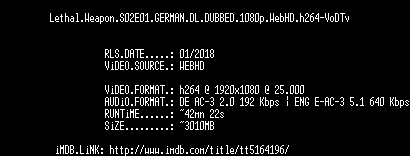 | FiLENAME: | Lethal.Weapon.S02E09.GERMAN.DL.DUBBED.1080p.WebHD.h264-VoDTv.mkv |