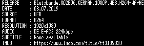 | FiLENAME: | Blutsbande.S02E06.GERMAN.1080P.WEB.H264-WAYNE.mkv |