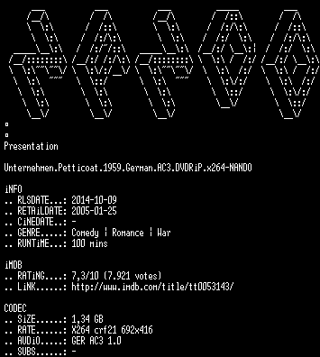 | FiLENAME: | Unternehmen.Petticoat.1959.German.AC3.DVDRiP.x264-NANDO.mkv |
