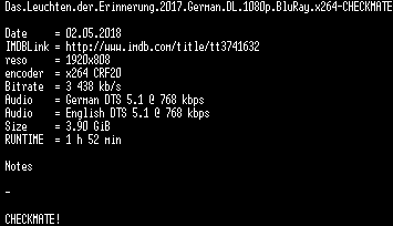 | FiLENAME: | Das.Leuchten.der.Erinnerung.2017.German.DL.1080p.BluRay.x264-CHECKMATE.mkv |