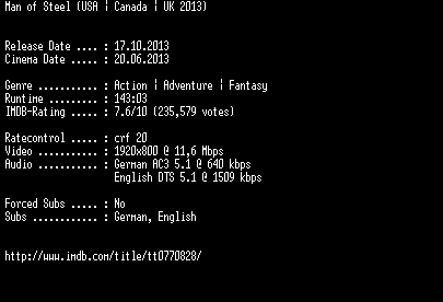| FiLENAME: | Man.of.Steel.German.DL.1080p.BluRay.x264-EXQUiSiTE.mkv |