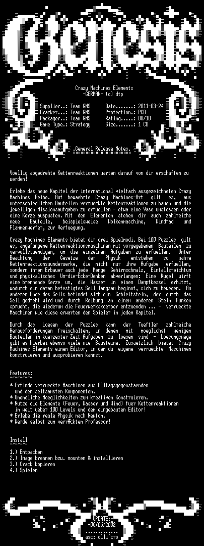 | FiLENAME: | Crazy.Machines.Elements.GERMAN-GENESIS.bin |