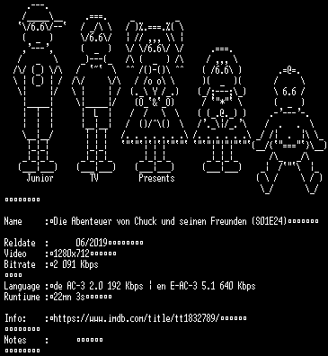| FiLENAME: | Die.Abenteuer.von.Chuck.und.seinen.Freunden.S01E24.German.720p.WEBHD.x264-JuniorTV.mkv |