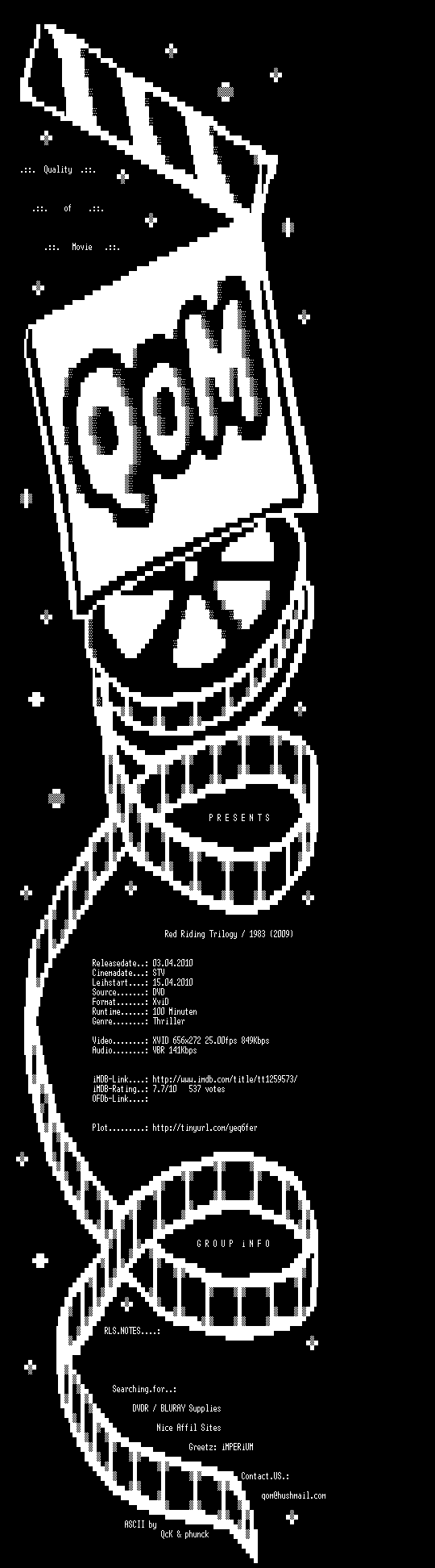 | FiLENAME: | Red.Riding.Trilogy.1983.German.2009.DVDRiP.XviD-QoM.avi |
