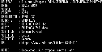 | FiLENAME: | Die.zwei.Paepste.2019.GERMAN.DL.1080P.WEB.X264-WAYNE.mkv |