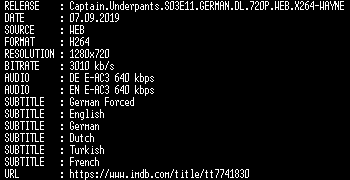 | FiLENAME: | Captain.Underpants.S03E11.GERMAN.DL.720P.WEB.X264-WAYNE.mkv |