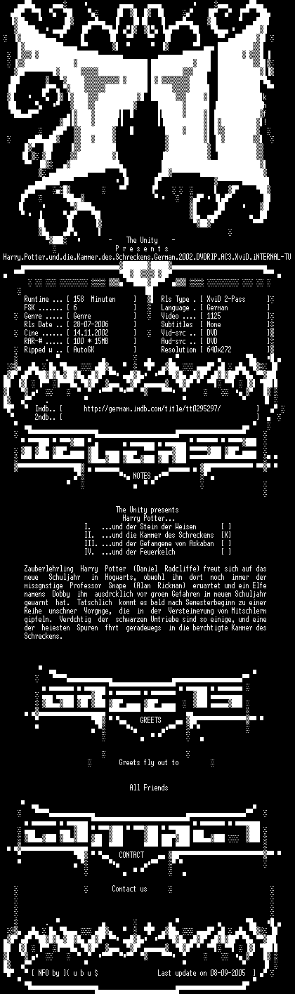 | FiLENAME: | Harry.Potter.und.die.Kammer.des.Schreckens.German.2002.DVDRIP.AC3.XviD.iNTERNAL-TU.CD2.avi |
