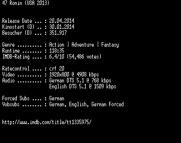 | FiLENAME: | 47.Ronin.German.DL.1080p.BluRay.x264-EXQUiSiTE.mkv |