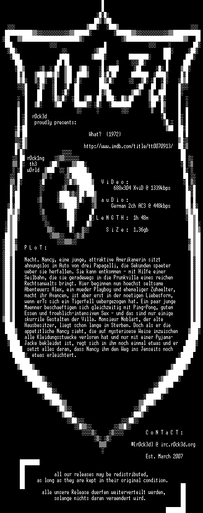 | FiLENAME: | What (1972) [GER-AC3 WS DVD] CD1.avi |