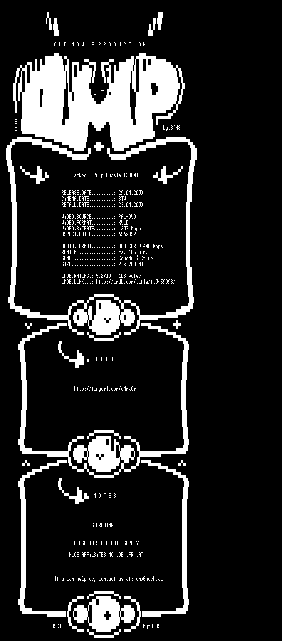 | FiLENAME: | Jacked - Pulp Russia (2004) [GER-AC3 WS DVD] CD2.avi |