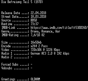 | FiLENAME: | Die.Befreiung.Teil.5.German.REMASTERED.1971.AC3.BDRip.x264-SPiCY.mkv |