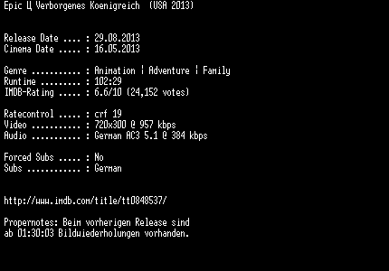 | FiLENAME: | Epic.Verborgenes.Koenigreich.German.PROPER.BDRiP.x264-EXQUiSiTE.mkv |