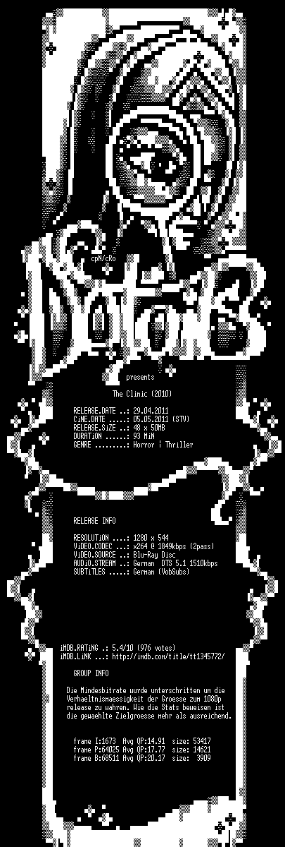 | FiLENAME: | The.Clinic.2010.German.720p.BluRay.x264-DETAiLS.mkv |