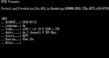 | FiLENAME: | Protest.und.Provokation.Die.AfD.im.Bundestag.GERMAN.DOKU.720p.HDTV.x264-BTVG.mkv |