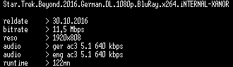 | FiLENAME: | Star.Trek.Beyond.2016.German.DL.1080p.BluRay.x264.iNTERNAL-XANOR.mkv |