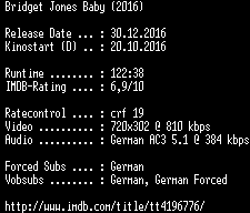 | FiLENAME: | Bridget.Jones.Baby.German.2016.AC3.BDRip.x264-COiNCiDENCE.mkv |