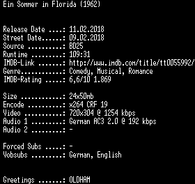 | FiLENAME: | Ein.Sommer.in.Florida.1962.German.REMASTERED.1962.AC3.BDRip.x264-SPiCY.mkv |