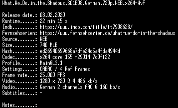 | FiLENAME: | What.We.Do.in.the.Shadows.S01E08.German.720p.WEB.x264-WvF.mkv |