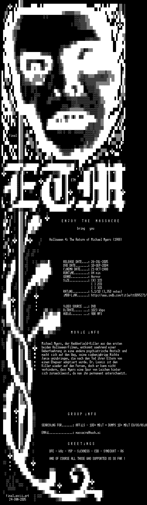 | FiLENAME: | Halloween.4.1988.UNCUT.German.DVDRiP.XviD.iNTERNAL-ETM.avi |