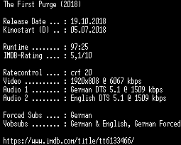 | FiLENAME: | The.First.Purge.2018.German.DTS.DL.1080p.BluRay.x264-COiNCiDENCE.mkv |