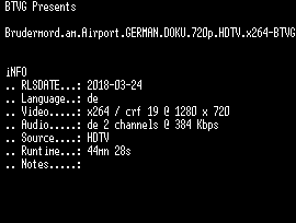 | FiLENAME: | Brudermord.am.Airport.GERMAN.DOKU.720p.HDTV.x264-BTVG.mkv |