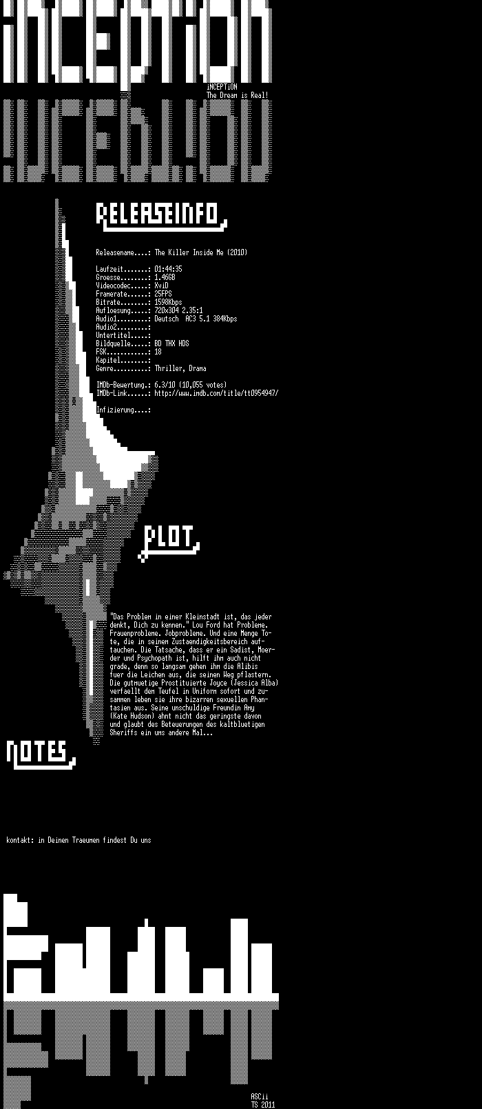 | FiLENAME: | The.Killer.Inside.Me.2010.German.AC3.BDRip.XviD-iNCEPTiON.avi |