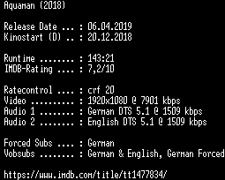| FiLENAME: | Aquaman.2018.German.DTS.DL.1080p.BluRay.x264-COiNCiDENCE.mkv |
