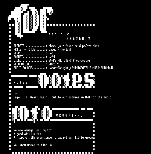 | FiLENAME: | Lasgo-Tonight-x264-2010-TDF.mkv |