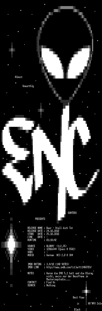 | FiLENAME: | Bear - Stell dich Tot (2010) [GER 720p BD].mkv |