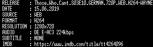 | FiLENAME: | Those.Who.Cant.S03E10.GERMAN.720P.WEB.H264-WAYNE.mkv |