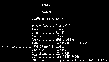 | FiLENAME: | Gleissendes.Glueck.German.2016.AC3.BDRip.x264-MOViEiT.mkv |