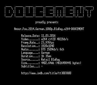 | FiLENAME: | Amour.Fou.2014.German.1080p.BluRay.x264-DOUCEMENT.mkv |