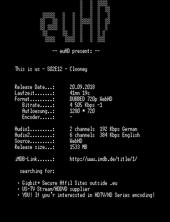 | FiLENAME: | This.is.us.S02E12.Clooney.GERMAN.DUBBED.DL.720p.WebHD.h264-euHD.mkv |
