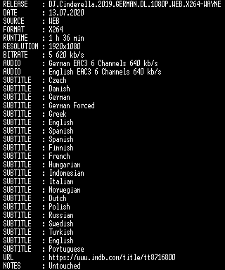 | FiLENAME: | DJ.Cinderella.2019.GERMAN.DL.1080P.WEB.X264-WAYNE.mkv |
